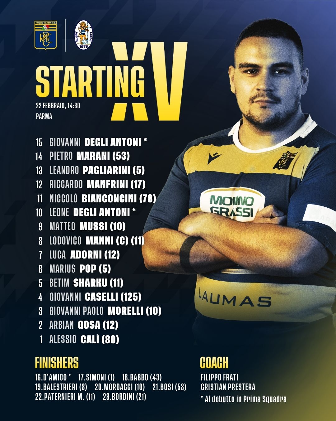 In occasione della 3ª giornata di ritorno del Campionato di Serie A – Girone 2, la RUGBY PARMA scenderà in campo domenica al Banchini contro il RUGBY LECCO con questa formazione:
