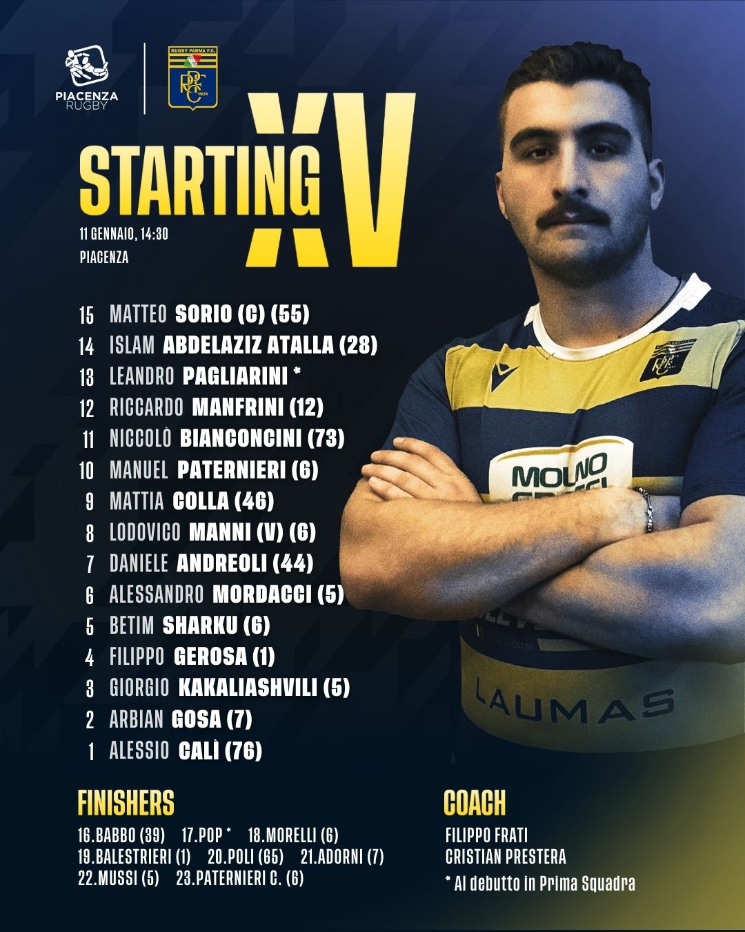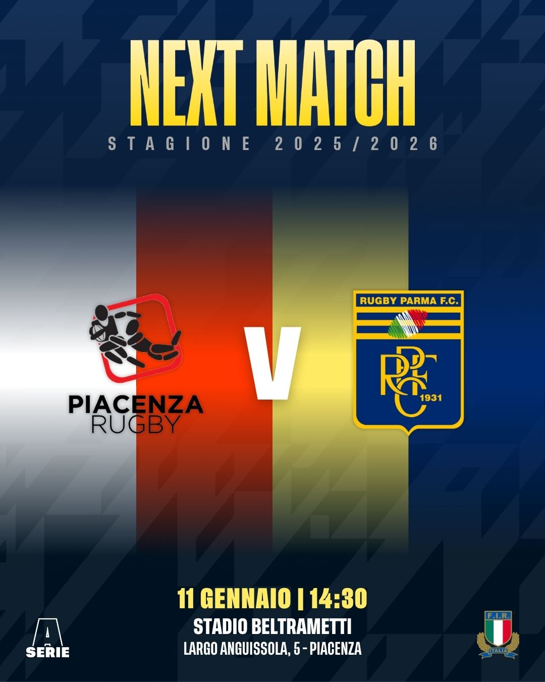 In occasione della 7ª giornata del Campionato di Serie A – Girone 2, primo turno del 2026, la RUGBY PARMA scenderà in campo domenica al Beltrametti di Piacenza contro il PIACENZA RUGBY con questa formazione: