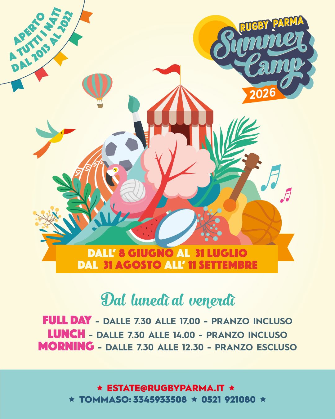 Tommaso Schiavon: +39 334 5933508 | 0521 921080 | estate@rugbyparma.it