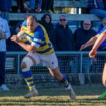 La partenza è promettente e già al 4′ Adorni finalizza un lungo multifase allungandosi sopra il raggruppamento; Bonserio trasforma e il tutto sembra ben indirizzato. Tuttavia, la vibrante reazione e tanta confusione, con errori di handling da entrambe le parti, portano la partita su binari consoni ai locali che pareggiano e mettono sotto pressione la Rugby Parma. Dopo una serie di occasioni da una parte e dall’altra, al 25’ capitan Pelizza viene servito direttamente da Adorni su mischia vinta e punta l’intervallo tra i centri siglando il vantaggio, con trasformazione del preciso Bonserio. I gialloblù, complice il caldo opprimente, sembrano allo stremo e i padroni di casa esondano installandosi nella metà campo avversaria e siglando le due mete del sorpasso negli ultimi tre minuti del primo tempo, che si chiude sul 21-14.